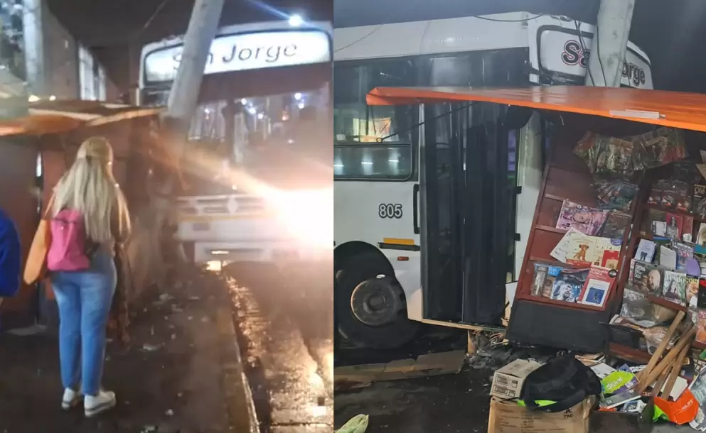 El vehículo golpeó violentamente un poste de alumbrado de cemento y se incrustó directamente en un puesto de revistas ubicado sobre la vereda